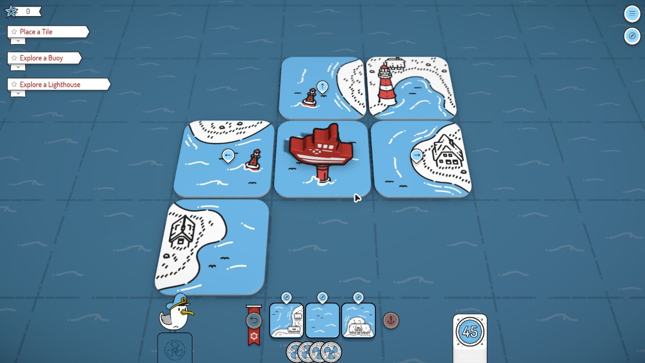 湛蓝北海的波澜轻拍着礁石,四艘巡航船正从中心灯塔起程。玩家化身海岸保镳队长,每回合抽取三块海图板块,指尖轻旋间决议板块的陆海朝向——陆地边际的棕岩与海面的碧水需严丝合缝拼接。船舶随新铺板块移动,逐步织就一张动态航海图,既要防止陆地彻底封闭航道,又要在四个方向保存开阔水域。与队友协作时,导航员规划道路、维修工修正灯塔、侦查员搜索碎片,一起应对随机触发的海上谜题与事情,用最连接的航线冲击高分。
